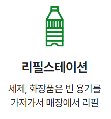 리필스테이션 이용, 다회용기 이용, 무공해차 대여, 친환경제품구매